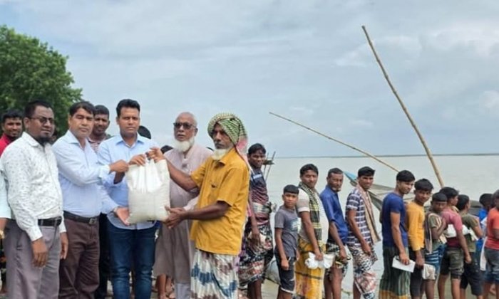 চাঁপাইনবাবগঞ্জে বানভাসি পরিবারের মাঝে ত্রাণ বিতরণ